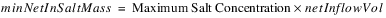 For a negative netInVol, incorporating more salt from storage will lower the netInSaltMass but will raise the concentration, so the minimum mass is based on the Maximum Salt Concentration.