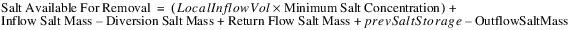 For a negative Local Inflow, incorporating more salt from storage will lower the Local Inflow Salt Mass but will raise the Local Inflow Salt Concentration, so the minimum local inflow mass is based on the Maximum Salt Concentration.