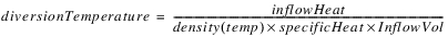 First, if the previous Diversion Temperature is not valid, set a local variable temp to 10deg Celsius. Otherwise, set temp to the previous Diversion Temperature. This value is used to compute the density of the water. If the current Diversion Temperature is not valid, set it to: