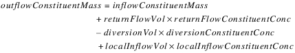 This method uses the following mass balance equation for a conservative substance to Calculate Distributed Salt Concentration Output, the salt concentrations of each discretized segment of the reach. This function also sets Outflow Salt Mass for the reach.