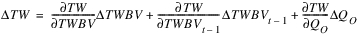 The partial derivatives are defined as follows. All of these derivatives are calculated for each timestep and therefore are based on the values computed during the previous rulebased simulation (which used the estimated values, QS*, QT*, and so on).