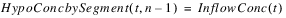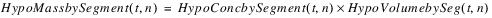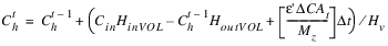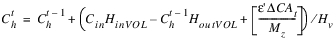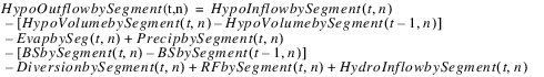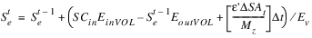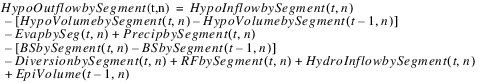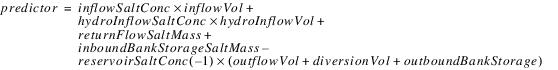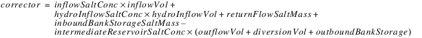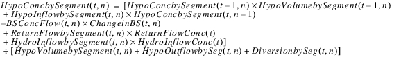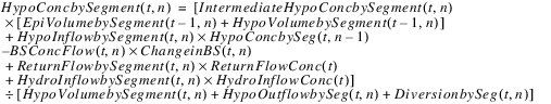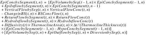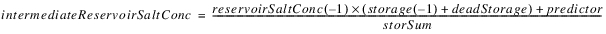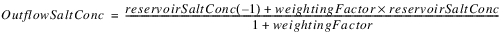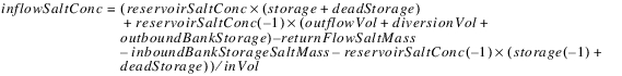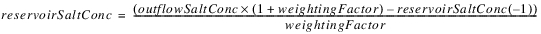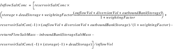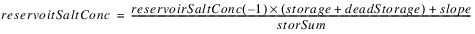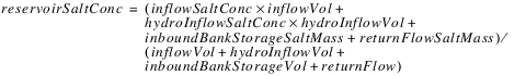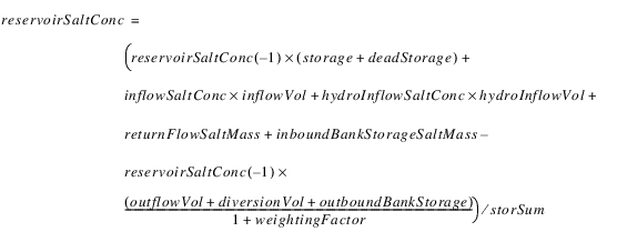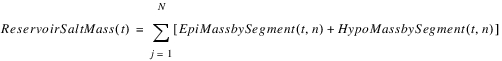 The reservoir salt mass is calculated based on the concentration and volume in each segment. The following equations calculated the reservoir salt mass:
