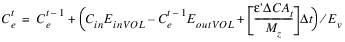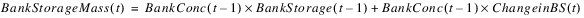 The bank storage salt concentration is computed as follows: