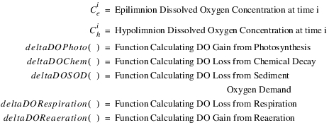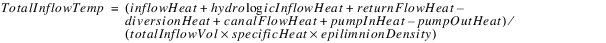 The epilimnion inflows and outflows for each segment are computed using the water balance calculated by existing RiverWare functions. The water balance calculates outflow using the inflow, volume, vertical flow, evaporation, precipitation, hydrologic inflow, diversion, return flow and bank storage. If the pool elevation (PE) is below the thermocline elevation (TE), there will be no water in the epilimnion. The epilimnion inflows and outflows for each segment are computed as follows: