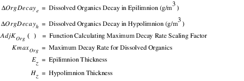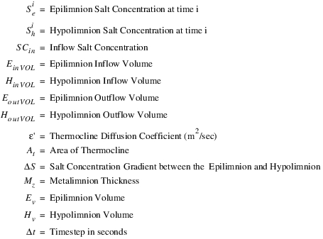 The outflow salt mass and concentration is calculated based on the outflow volume, and the epilimnion and hypolimnion concentration in segment N. The following equations calculated the outflow salinity:
