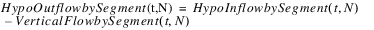 The vertical flow is the difference between the hypolimnion inflow and outflow. The vertical flow moves excess water enter the hypolimnion to the epilimnion to keep the hypolimnion at a constant volume. The vertical flow only occurs in the segment closest to the dam, since there is no physical mechanism for vertical flow in other segments. If the pool elevation is below the thermocline, there is no vertical flow. From the conditions described above, the vertical flow is computed as follows: