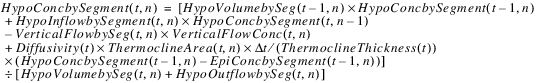 2. Compute the salt mass and concentration in the epilimnion and hypolimnion for each segment and layer using the flows calculated from the water balance and an additional diffusion term.