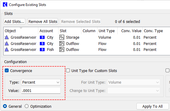 The Configure Existing Slots utility was enhanced to support the configuration of convergence of account and supply slots. This allows you to change the convergence parameter of many accounting slots in one operation.