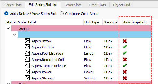 A new column on the Edit Series Slot List tab allows you to control which slots in the SCT will have their corresponding snapshot slots displayed when one of the Show Selected/Recent Snapshots options is selected.