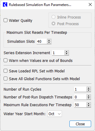 Slot maximum iteration checking is turned on by default and cannot be turned off when performing Rulebased Simulation, though the number of maximum iterations can be changed by the user. This iteration default can be viewed as a dimmed box for Check Iterations in the Rulebased Simulation Run Parameters dialog. From the View menu of the Run Control dialog, select Rulebased Simulation Run Parameters... to open the dialog. Within this dialog, the user can change the number of maximum allowed slot resets per timestep (i.e. max iterations). The default value is 40). For more complex models, increase the number of maximum iterations.