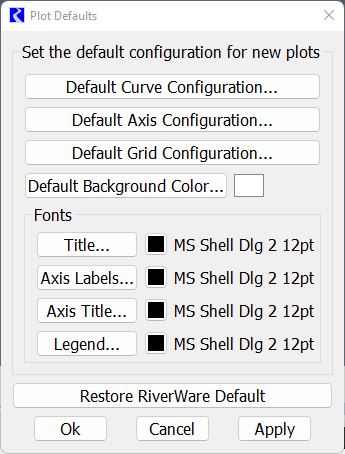 Note: Edits made to this dialog are applied to the plot page being edited in the Plot Editor Dialog. In that dialog, you can either accept those changes (OK or Apply) or Cancel those changes.