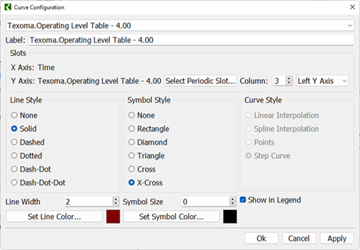 The Curve Configuration also allows you to specify whether the curve should be shown in the Legend. Select the Show in Legend checkbox. You can also remove a curve from the legend by right-clicking the item in the legend and choosing Remove From Legend.