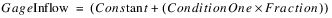 The Stream Gage has a new method category, Conditional Flow Calc, that contains the Fractional Flow user method. The default method in this category is None, so existing models do not require changes. The new user method, Fractional Flow, calculates and sets Gage Inflow based on a comparison between two conditions. If Condition One is less than Condition Two, then the Gage Inflow is set to Condition One multiplied by a user input seasonal Loss Factor plus a user specified Constant. If Condition One is not less than Condition Two, then Gage Inflow is set to a user specified Normal Flow. The following pseudo-code displays the logic of how the Gage Inflow slot is calculated: