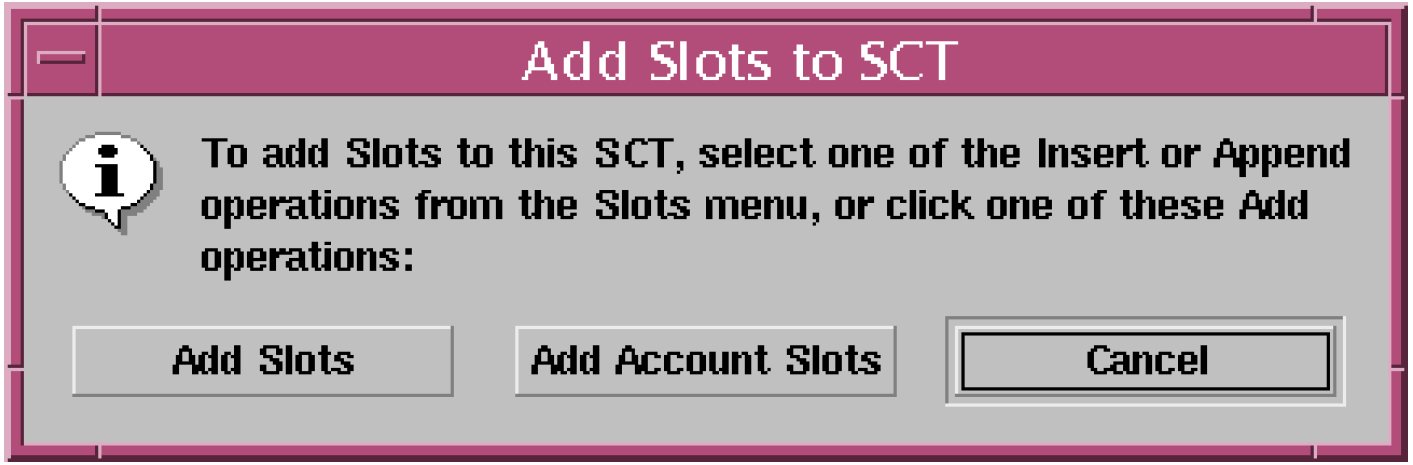 When creating a new SCT, the message box illustrated below is presented to the user for easy initiation of Slot Selection to add Slots to the SCT. This occurs only if the Workspace is not empty (i.e. only if at least one Object exists).