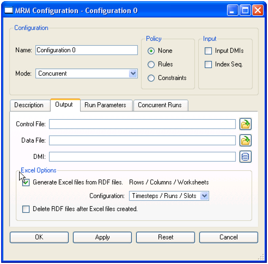 In the Output tab of the MRM configuration, the user must select the toggle: “Generate Excel files from RDF files” and then specify the configuration. MRM then creates the Excel files specified data files. The user can also specify that they wish to delete the RDF files after the Excel files are created.