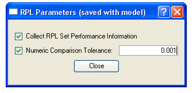 • Numeric Comparison Tolerance: This parameter specifies whether or not to use a tolerance value for numeric comparisons in RPL and allows the user to specify the tolerance value.