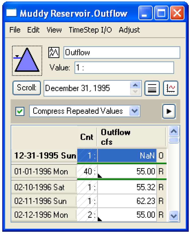 The model file format has been modified to use run-length encoding where possible for flags and data. To maximize the ability to use this encoding for flags, the flags series is written out separately from the data series. Small model files might get slightly larger, but most large model files will get smaller especially if they are large in the number of timesteps.