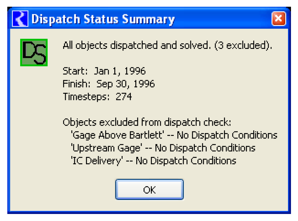 Selecting the icon takes you to the Model Run Analysis tool with the first relevant object at the earliest timestep highlighted. When you shift-click on the icon, a dialog is shown with a summary of the run analysis.