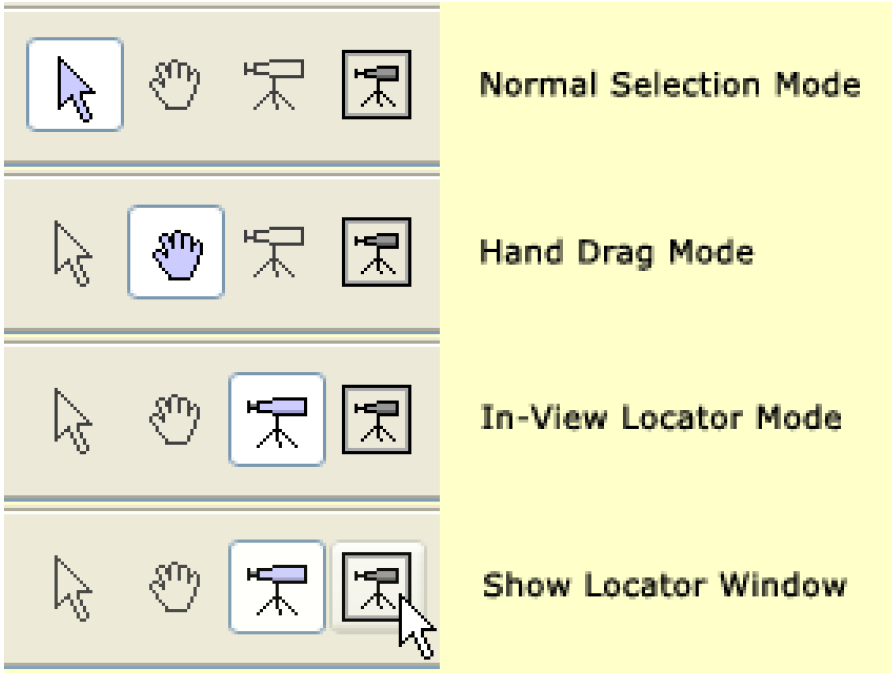 • In-View Locator View Mode is an alternative to the separate Locator Window.