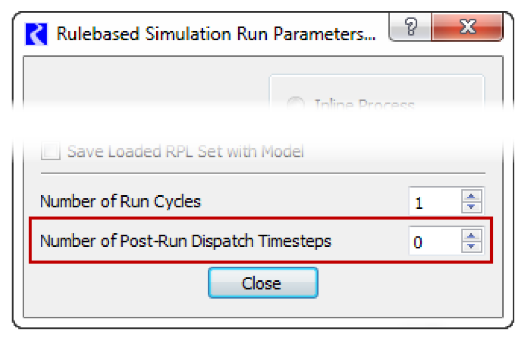 You can now specify the number of timesteps past the finish timestep for which dispatching is possible. From the Run Control, use the View (Rulebased) Simulation Run Parameters menu. Then specify the integer number of timesteps in the Number of Post-Run Dispatch Timesteps spinner.