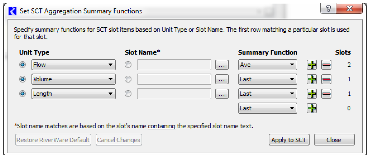 The SCT was improved to allow you to quickly specify the summary function for aggregating timesteps for one or more slots on the SCT.