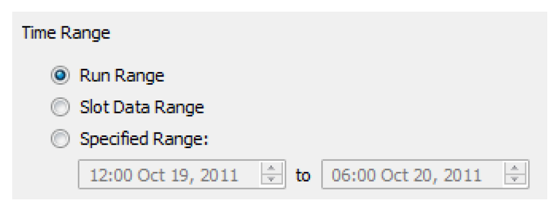 The statistical table slot now supports options to more easily filter the input slot data to the various time ranges. Previously, you could filter by a specified range. Now the configuration has options to filter by Run Range, Slot Data Range, or a Specified Range as shown in the figure. Newly created statistical slots default to the run range filter.