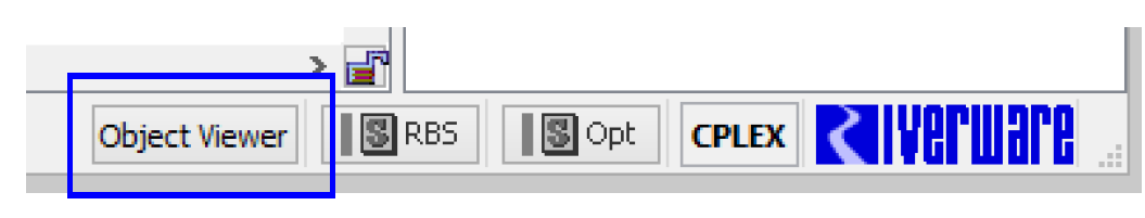 The Object Viewer now persists within a RiverWare session. You can close the Object Viewer, and when you re-open it, the objects will still be there. Use the Object Viewer button in the lower right of the workspace to re-show the viewer.
