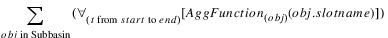 Description | Sum of a timeseries of values, each of which is the result of aggregating several objects’ slot values. | |