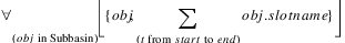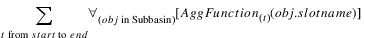 Description | Sum a slot’s values over a time range, for each object in a subbasin. | |