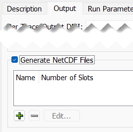 2. Select the Plus sign to add a new netCDF output file. Then select Edit to configure its contents. This will open the NetCDF File Configuration dialog.