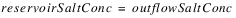 The reservoir salt mass is calculated based on the concentration and volume in each segment. The following equations calculated the reservoir salt mass: