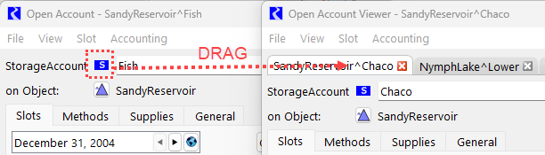 To move an Open Account window back onto the viewer, grab the Account icon (S, D, I, or P icon) and drag it anywhere onto the Viewer. A new tab will be created. Or use the File, then Dock In Open Account Viewer menu.