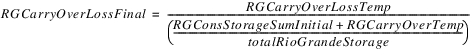If totalRioGrandeStorage is zero, then prevTotalRioGrandeStorage is used in the denominator. If both are zero, then epsilon is zero. The iterative loop repeats until the absolute value of epsilon is less than the specified tolerance in the Convergence Percentage slot or the maximum number of iterations (Max Iterations slot) is reached.