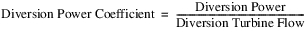 Otherwise, Diversion Power is calculated by a 3‑D interpolation on the Diversion Power Table using Diversion Operating Head and Diversion Turbine Flow, and Diversion Power Coefficient is calculated as follows: