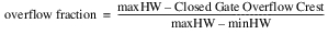 Information: This value is computed by the regulated spill method as the value found on the Closed Gate Overflow Table multiplied by the Closed Gate Overflow Capacity Fraction