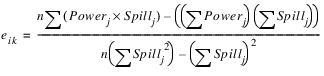 FOR EACH combination of Storage and Downstream Storage, k, perform a linear regression to calculate a temporary Spill coefficient eik: