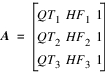 4. RiverWare calculates the upper bound planes. These are entered in the PSA Max Constraints table slot, one row for each plane, where the planes represent Power as a function of Turbine Release and PSA Head Factor. For each combination of three points in the PSA Grid Points Table, RiverWare calculates the corresponding plane. For any three points, the plane is defined by three linear equations, which can be represented in matrix form.