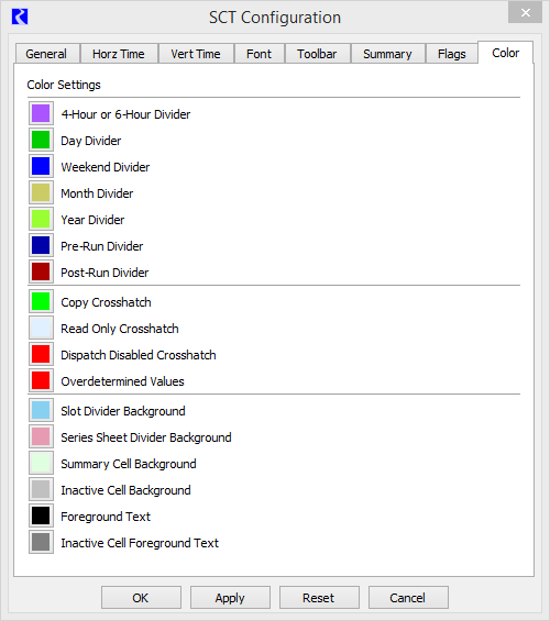 Allows you to define custom colors for each of the specified SCT elements.