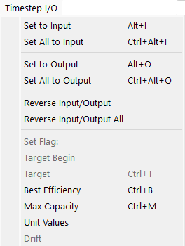 Similarly, Insert New Cell or Insert Copied Cells when the first timestep is selected adds a new timestep to the beginning of the series. When any other timestep is selected, Insert New Cell or Insert Copied Cells shifts data down from the added cell, reassigning values to new timesteps.