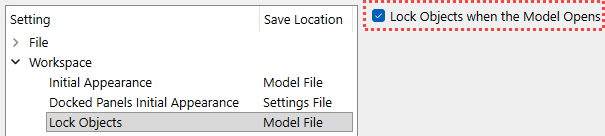 Within the settings manager, you can also specify the behavior of the lock on model open. (See the
