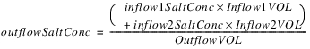 This method simply takes a weighted average of the inflows, and their respective salt concentrations, and sets the outflow salt concentration accordingly.
