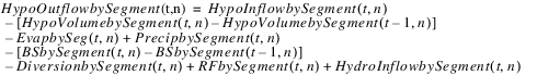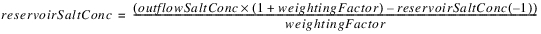 The reservoir salt mass is calculated based on the concentration and volume in each segment. The following equations calculated the reservoir salt mass: