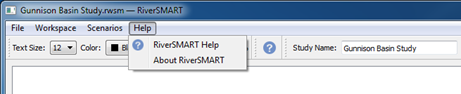 The RiverSMART Help item on the Help menu displays this Help document.