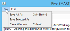 The size and location of the four scenario windows—confirmation, organization, simulation, and post-processing—are saved so they always open using the same size and placement on the workspace. This geometry persists across RiverSMART sessions.