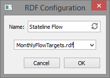 To open the Configuration window for a file, open the file icon on the RiverSMART workspace. Following is a sample Configuration window for an RDF file.