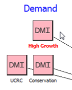 When input events (DMI, MRM, Model, or Policy) are modified, RiverSMART provides visual indicators to identify portions of the study that are out of date. If any item in an input event configuration window is modified, other than the name, the event label turns red to indicate that scenarios in which the event is included must be regenerated.