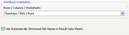 The data sheet layout is determined by the user-selected workbook orientation option. The three workbook dimensions—rows, columns, and worksheets—can be mapped to the three data dimensions—timesteps, slots, and runs, allowing for six possible workbook orientations. The following orientations are common:
