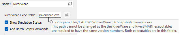 Display only. This shows the path to the RiverWare executable.
