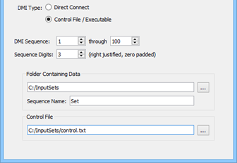 If you select the Control File / Executable option in the DMI Type field, the DMI Sequence Configuration window appears as follows.