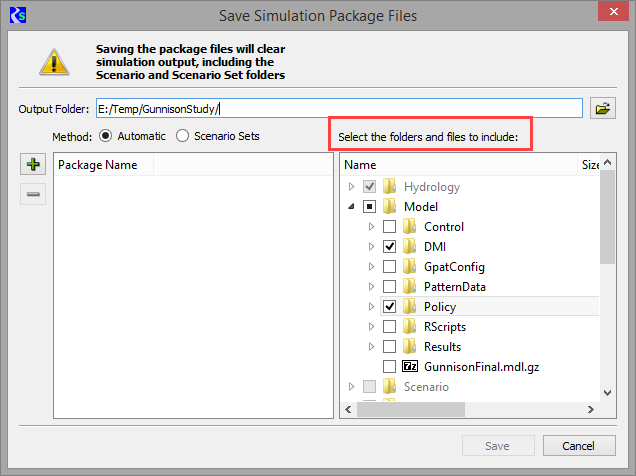 The Save Simulation Package Files dialog box now allows you to select which folders and files are archived in the package file. The dialog box displays a tree view from which you can select the folders and files to include.